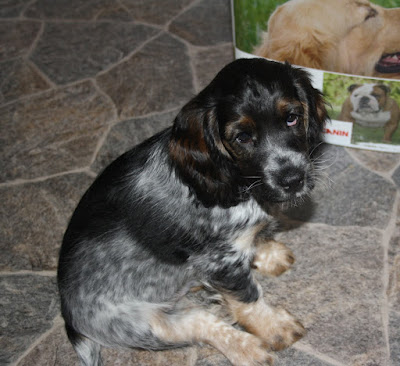 Inte alltid så enkelt att ta bilder på djur och en kull lekfulla valpar är extra svåra, då blev det bra när de placerades på köksbordet, en i taget...